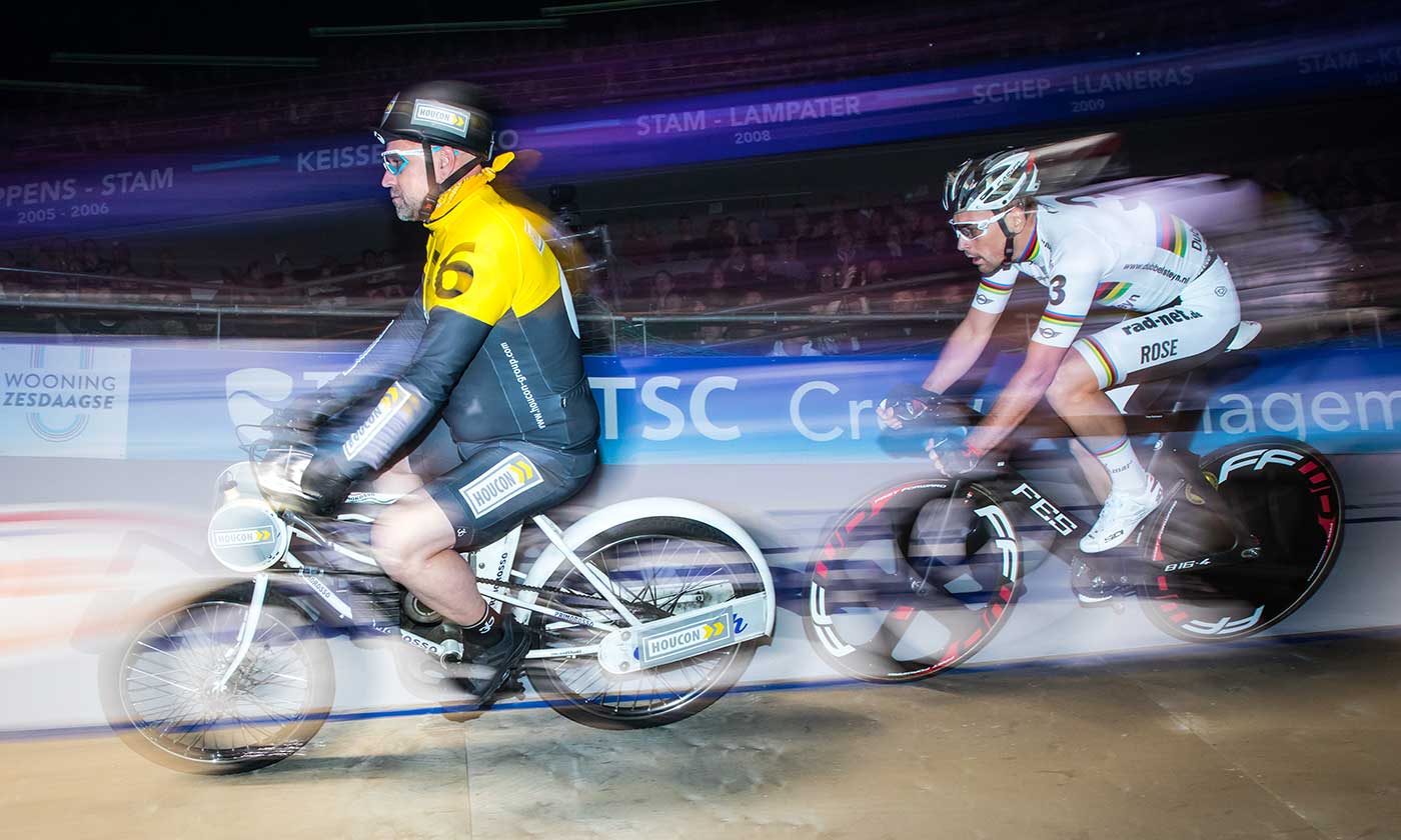 Six days of racing does not sounds all that impressive. However the timing is quite different as the riders race between 8pm and 1am. In total 12 couples - 26 riders – team up per event and ride all disciplines together with an occasional individual race. For example the derny race is always done as individual of a team. On each night the races combined make a total of 145 kilometers so over six days they ride about 870 kilometers. With 26 riders on the track and top speeds reaching easily 70km per hour this ain’t a simple job. A crowded pack on a small track, single speed bikes without brakes are ingredients that ask for super skilled riders. It’s therefore also that not all road riders are by definition good riders on the track.