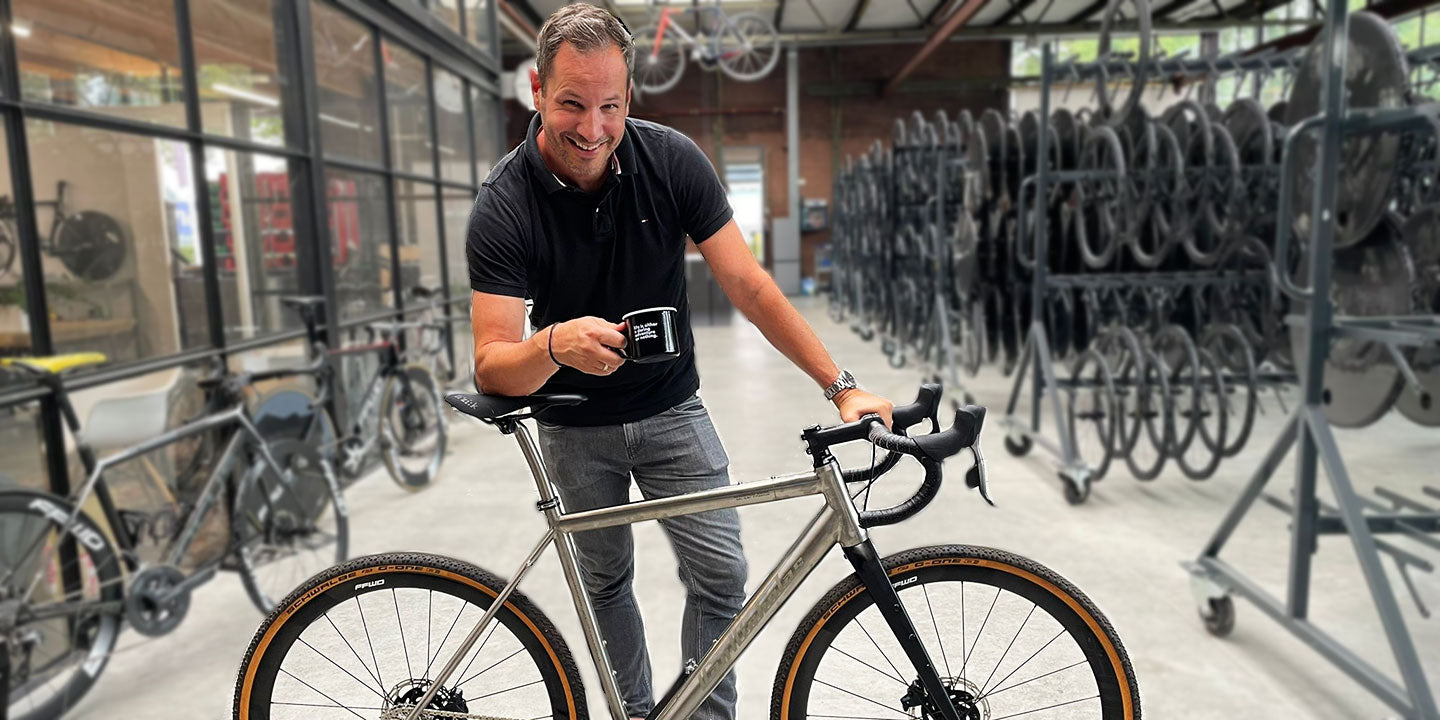 Sein persönliches Ziel ist es, immer nach dem nächsten Schritt zu suchen, um die Marke FFWD auf die nächste Stufe zu heben. Zu Hause finden Sie Riks ständig wachsende Fahrradsammlung: ein Standert-Rennrad, ein Van Nicholas-Schotterrad, ein American Eagle-MTB, ein Bombtrack-Stadtfahrrad, ein altes Colnago aus dem Jahr 1998, das zu einem Fixie umgebaut wurde, ein altes 26-Zoll-MTB, das auf einen Umbau wartet, und schließlich ein alter RIH-Rennrahmen, der zu einem Stadtfahrrad umgebaut wurde.