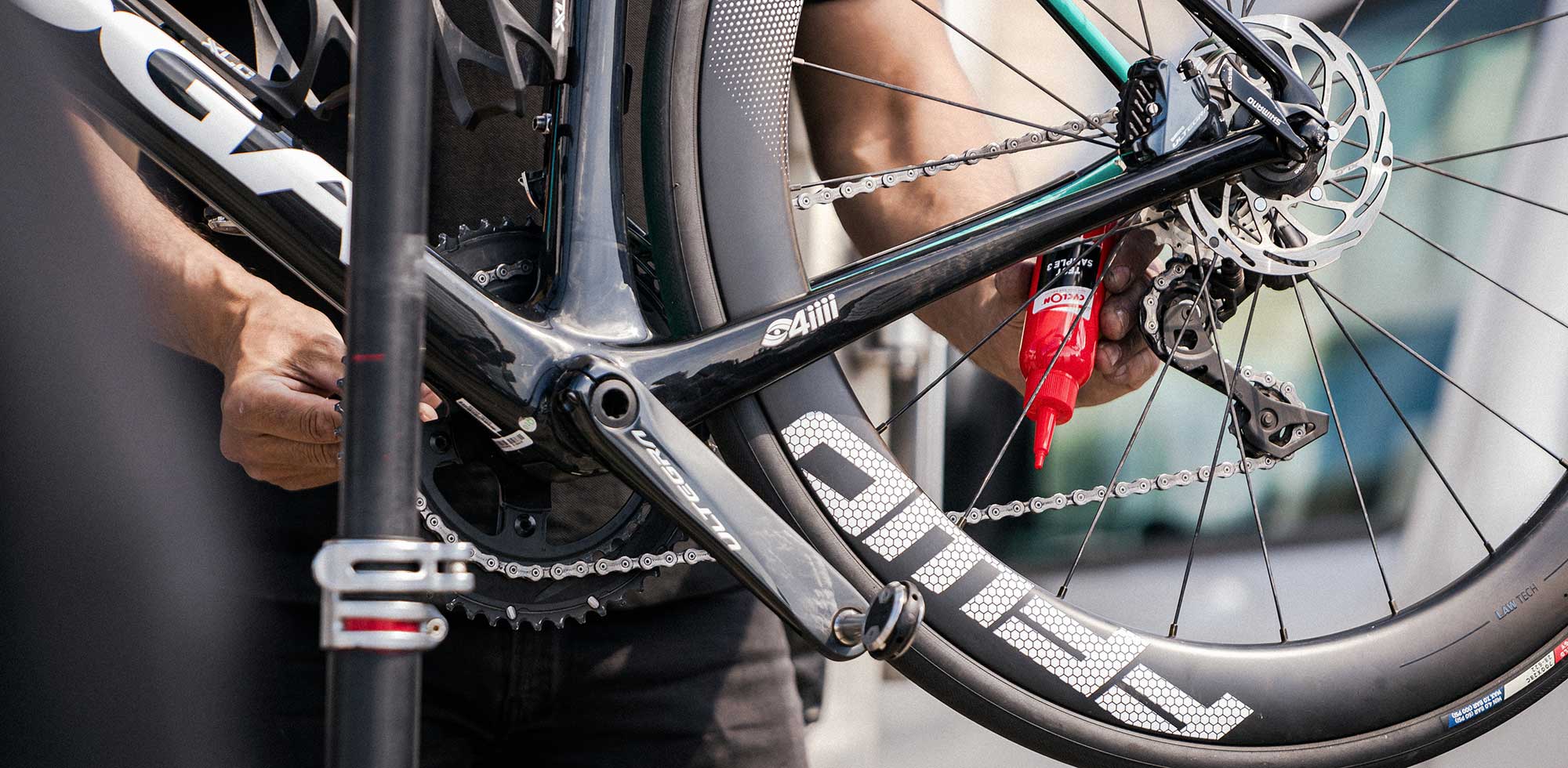 Dieses Serviceprodukt kann in unserem Shop online bestellt werden und beinhaltet einen jährlichen Räder-Check: Speichen nachspannen, Lager prüfen und ersetzen, Spot Repair und Politur der Räderoberfläche.